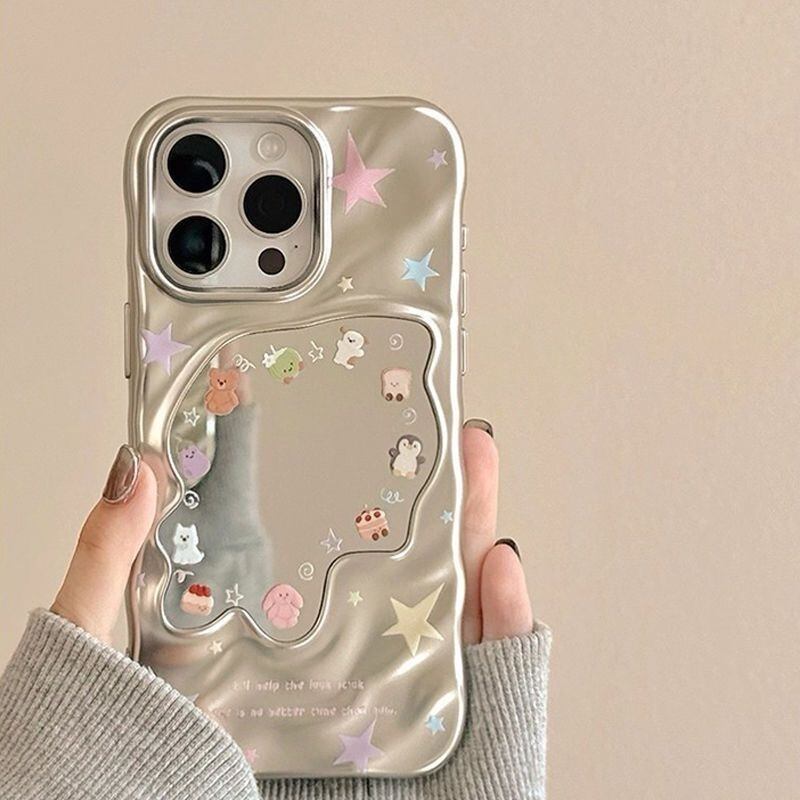 iPhone 17/16/15/14/13/12/plus シリーズ シルバーミラーiPhoneケース かわいい 韓国系iPhoneケース オシャレiPhoneケース iPhoneケース 個性的ユニークかわいいiPhoneケース 秋冬ケース 韓国系 かわいい jms25110101