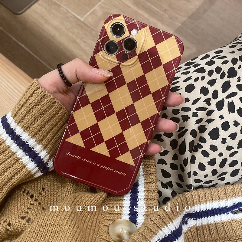 iphone ケース ニュアンス おしゃれ ブラウン格子柄スリーブ ♡ moumou83961353839