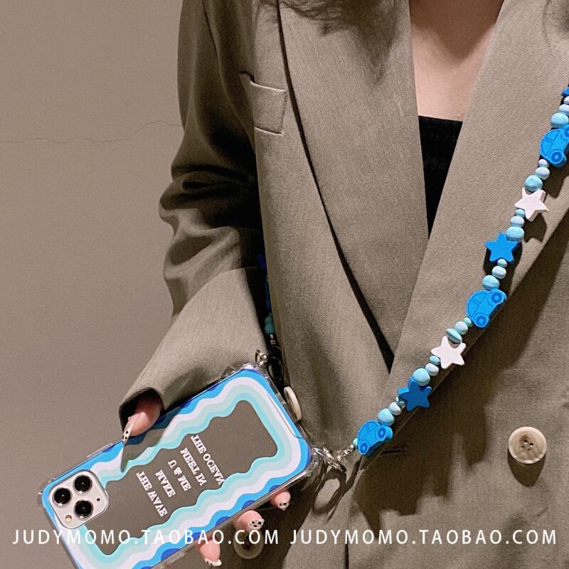 おしゃれ ニュアンス かわいい 個性的 iphoneケース Airpods case Airpodspro case ブロックブルーチェーン クロスボディ ♡ judymomoかわいい 82351757004