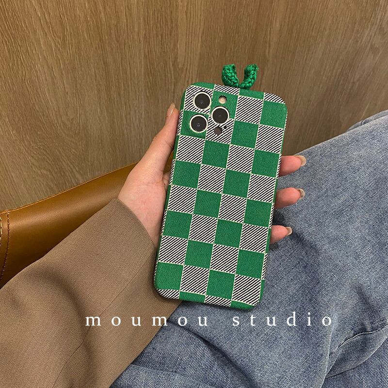iphone ケース ニュアンス おしゃれ オータムウィンターグリーングレー格子柄スリーブ 秋物 冬物 ♡ moumou46082192301