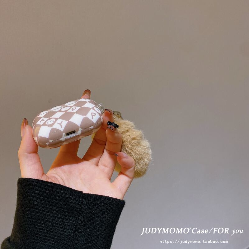 色:ミルクティーチェッカーボードぬいぐるみイヤホンスリーブ1/2世代,ミルクティーチェス盤ぬいぐるみイヤホンスリーブairpodspro