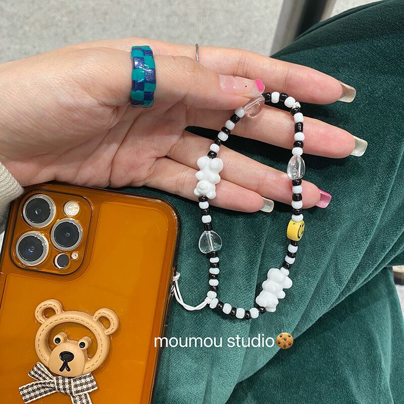 iphone ケース ニュアンス おしゃれ ホワイトブラックビーズ ペンダント ♡ moumou15514080730