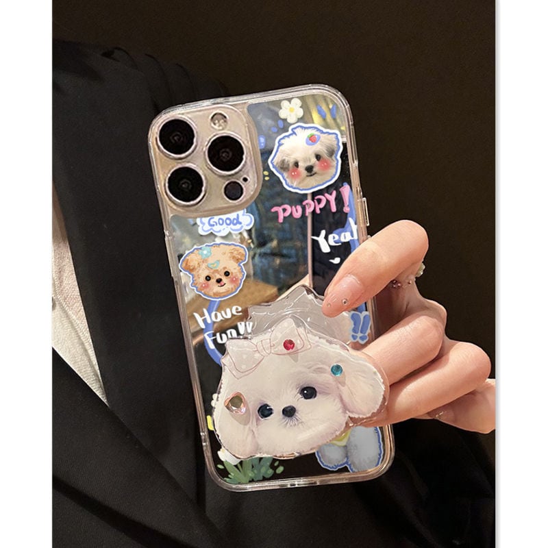 かわいい犬モチーフ スタンドクリップ付き わんちゃんiPhoneケース ミラーiPhoneケース 韓国系iPhoneケース かわいい jms23041102