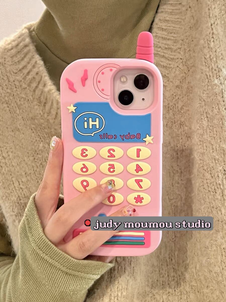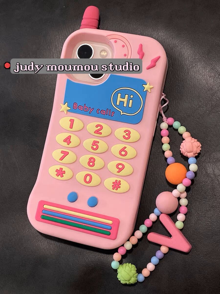 ストラップ付き携帯風iPhoneケース シリコンかわいいiPhoneケース おしゃれ 韓国iPhoneケース ユニークiPhoneケース jms23060904