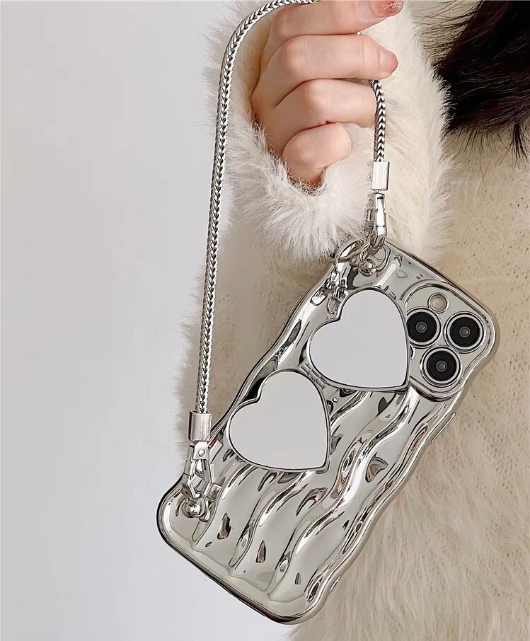 ハートミラーiPhoneケース ストラップ付き