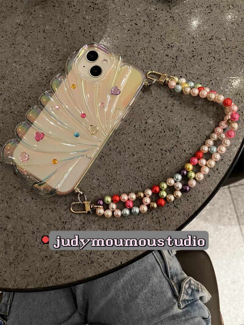 オーロラシェルiPhoneケース ブレスレットチェーン付き 貝殻iPhoneケース かわいい 落下防止 jms23070303
