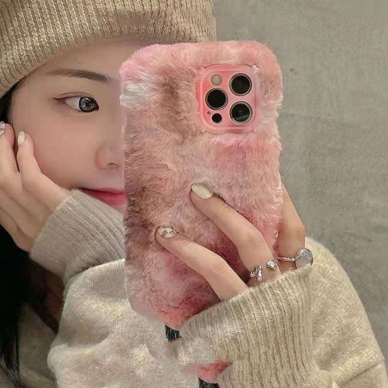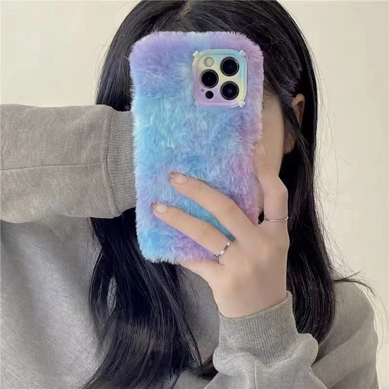 モコモコiPhoneケース グラデーション 秋冬 ピンク グリーン ブルー シンプル iphone11 12 13 jms23090602