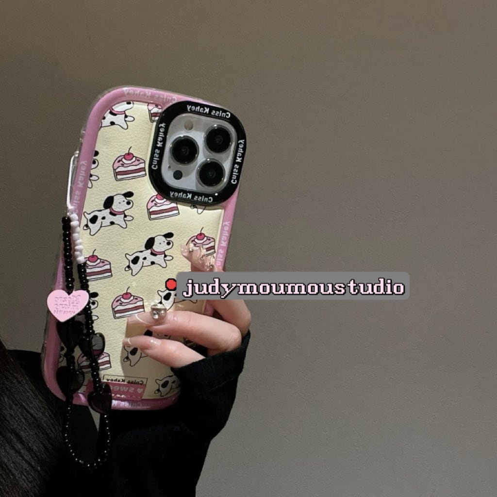 iPhone 15/14/13/12/11 わんちゃん&ケーキ ゆるいiPhoneケース ストラップ付きかわいいiPhoneケース 秋冬ケース 韓国系 かわいい jms23100801