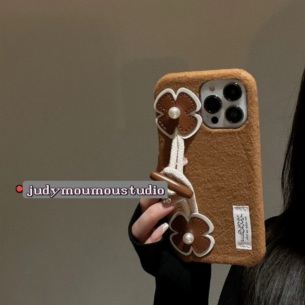 iPhone 15/14/13/12/11 ブラウンフラワーケース かわいいiPhoneケース 秋冬ケース 韓国系 かわいい jms23100803