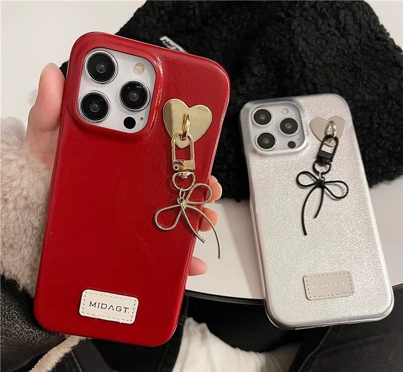 iPhone 15/14/13/12/11 リボンチェーンiPhoneケース ユニークかわいいiPhoneケース 秋冬ケース 韓国系 かわいい jms23122602