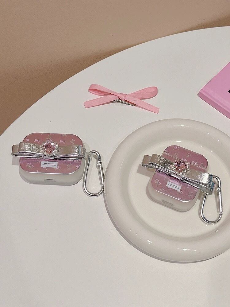 かわいいキラキラハート リボン柄airpodsケース エアポッツケース エアポッツプロケース iPhoneケース jms24070602
